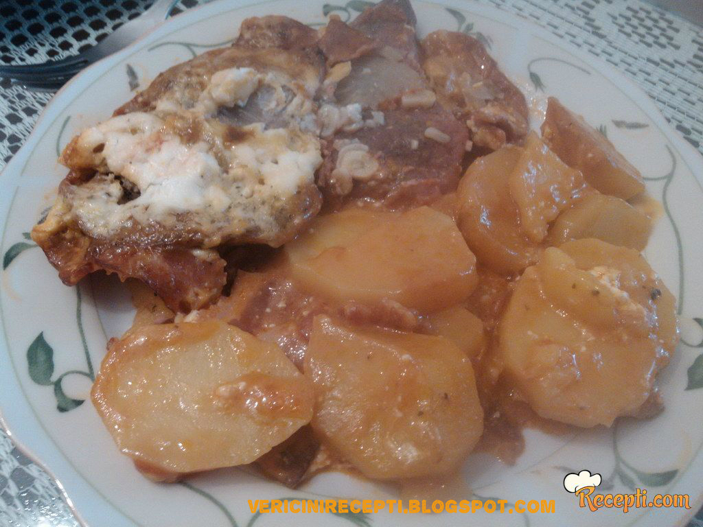 isečen krompir. Krompir posuti suvim biljni začinom i biberom. Zatim